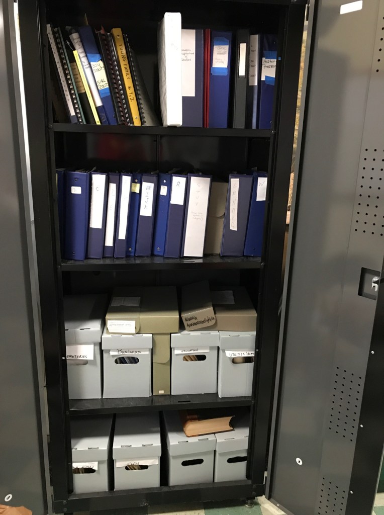 A shopping list at the end of the session included archivally stable folders, boxes, and tissue paper, available online. Using these, we housed materials in a six-foot-tall lockable metal storage cabinet, with access controlled by a partnership of the Waterford Historical Society and the Town Clerk. Importantly for our location, the seller provided delivery of the parts. The Town Clerk shared space in the vault for a few Items too large for the cabinet, and less rare books and town reports stayed on shelves in the adjoining town library for easy access.
