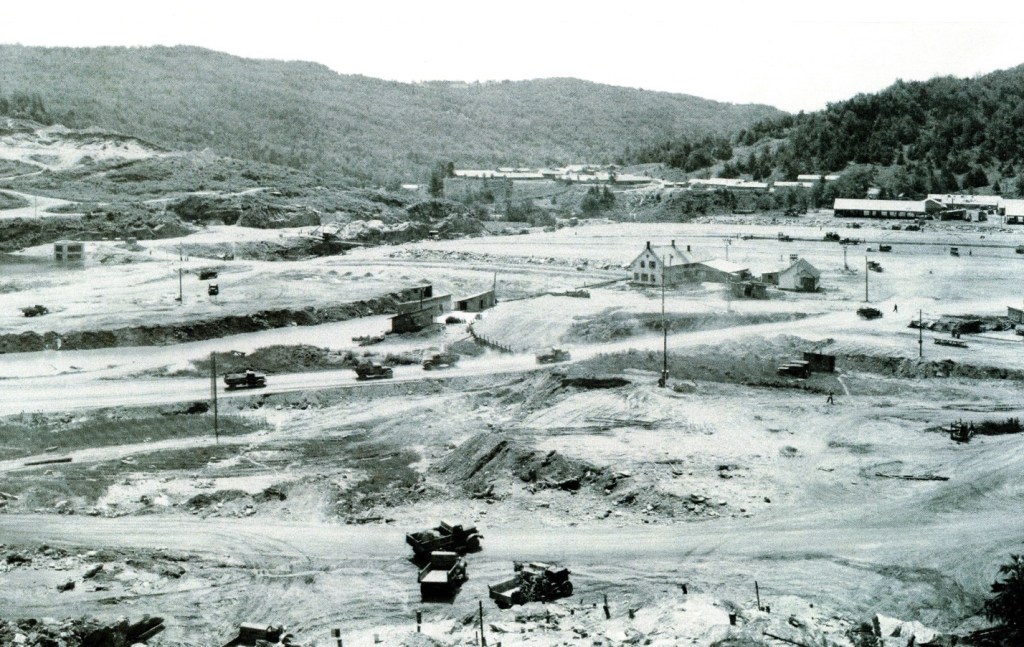I quickly focused on Houston’s photos showing the early stages of construction of the Waterbury Dam built by the Civilian Conservation Corps 1935-38. There were views up the river, down the river, over the massive CCC Camp Charles Smith and under the ledges where the dam would begin to seriously leak during the 1980s. There were views of the conduit under the dam where the Little River was rechanneled, the rock quarries, the steam shovels, dump trucks and rock crushing gear used by the C’s during construction. Even my mother’s one-room schoolhouse, which had been moved downstream for use as a CCC building during the dam’s construction, was visible! This was remarkable documentation of how the (then) world’s largest earth-filled dam had been built from local materials.