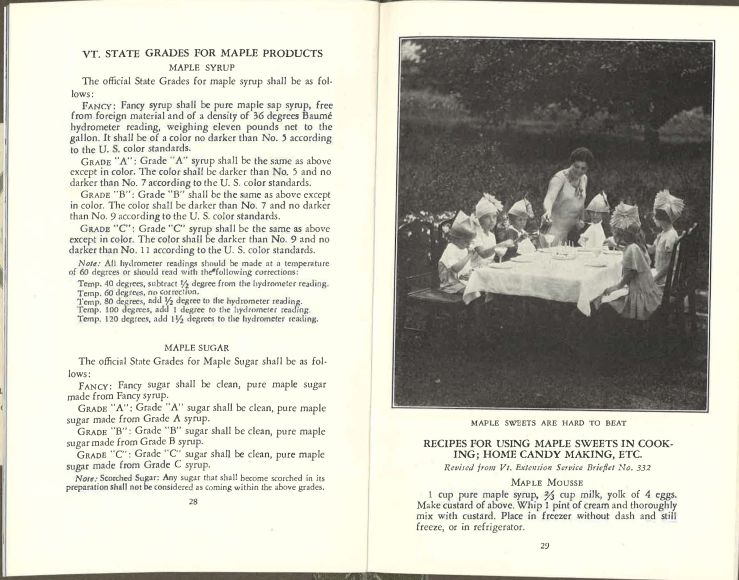 “Vermont: Maple Sugar and Maple Syrup” was published by the Vermont Department of Agriculture as a primer on all things maple, discussing the history of maple sugar and syrup in Vermont, as well as the industry that had grown around them up to 1936. Not just informational, the booklet also offers practical tips, including pointers on Vermont’s grading system for maple products. Recipes are also included in the booklet, with suggestions ranging from baked beans to maple candies, in order to show the possible culinary applications of Vermont maple products. (View the entire document).