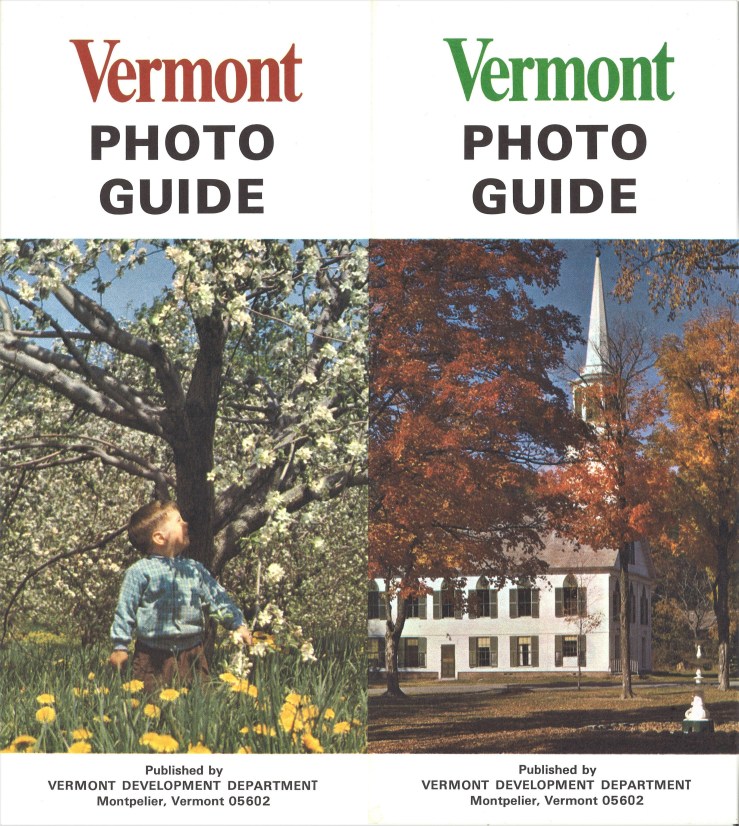 This pamphlet was distributed by the Vermont Development Department and highlights the “25 Top Photo Locations” across the state. The Vermont Development Department was tasked with, among other duties, the promotion of the state. Pamphlets such as these may have been distributed not only across the state at information booths staffed during summer tourist months but also at tourism information centers in several other states encouraging visitors to come to Vermont. (View the entire document)